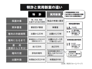 基本技術について特許出願をし、その周辺の製品寿命が短いと思われる改良製品については、安価な実用新案で防衛することができます。